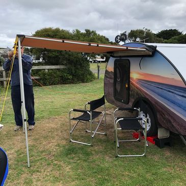 GoPod 81 is very popular for long hires. The full kitchen at the rear makes it popular for long trips. Its light tow weight makes it accusable for most cars to tow.